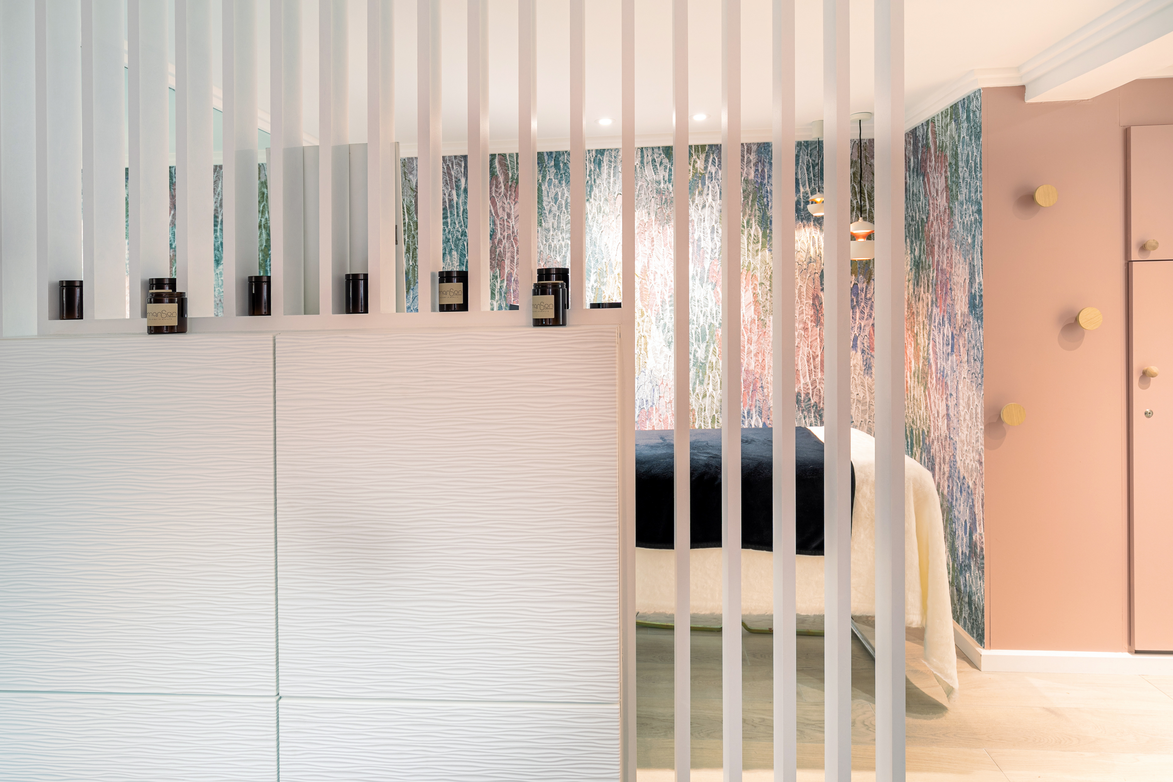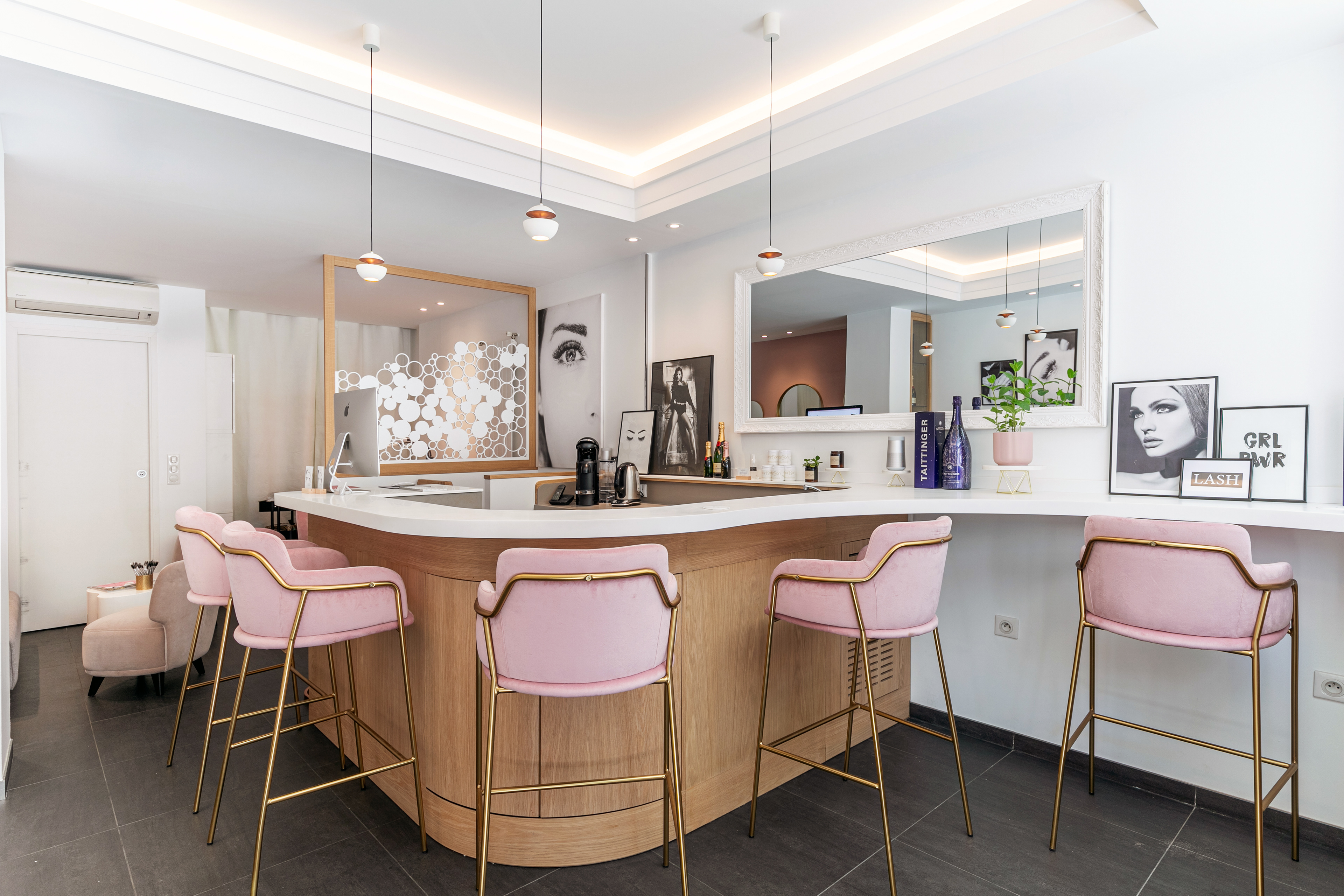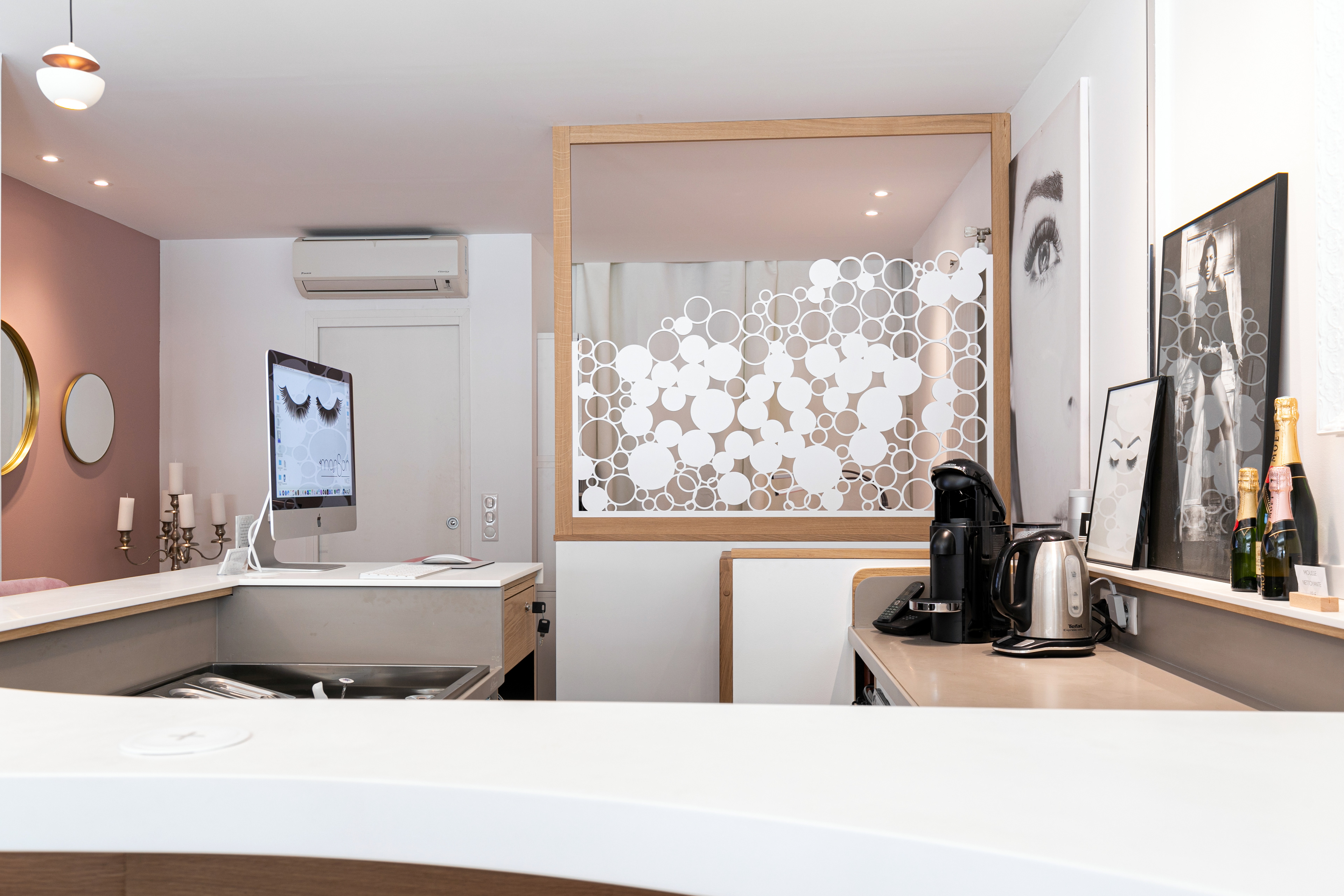 Création d'un espace Fusion, Bar à cils le jour et Bar à cocktails le soir! Aménagement de l'espace sur 2 niveaux.